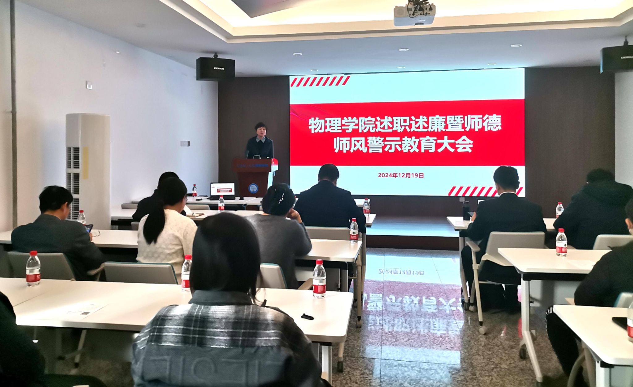 12月19日上午,物理学院2024年述职述廉暨师德师风警示教育大会在物理楼322室举行。物理学院领导班子成员、党委委员、纪委委员、师生党支部书记、全体教职工和学生代表参加此次会议。会议由学院党委副书记兼纪委书记于艳敏同志主持。