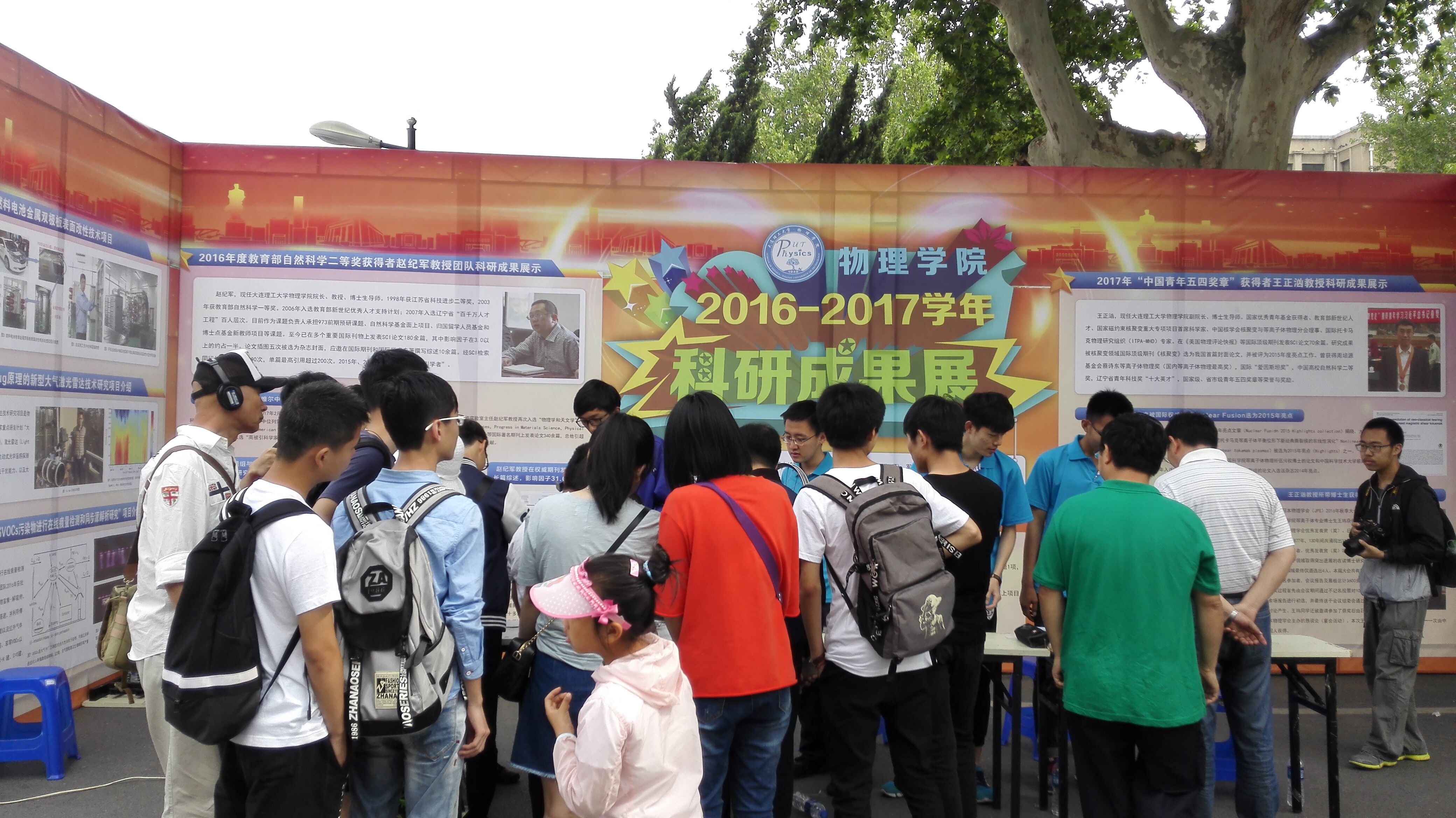 5月28日,第九届大连理工大学校园嘉年华绚丽开幕。盛大的场面,尽情的狂欢,临摹出一幅七彩画卷。其中,物理学院用2016-2017学年雄厚的科研成果板块、富有趣味的实验仪器互动板块和“与校同龄建业路漫漫,六十八载红色基因传”为主题的红色基因板块,向全校师生描绘出了一卷物理风采图。