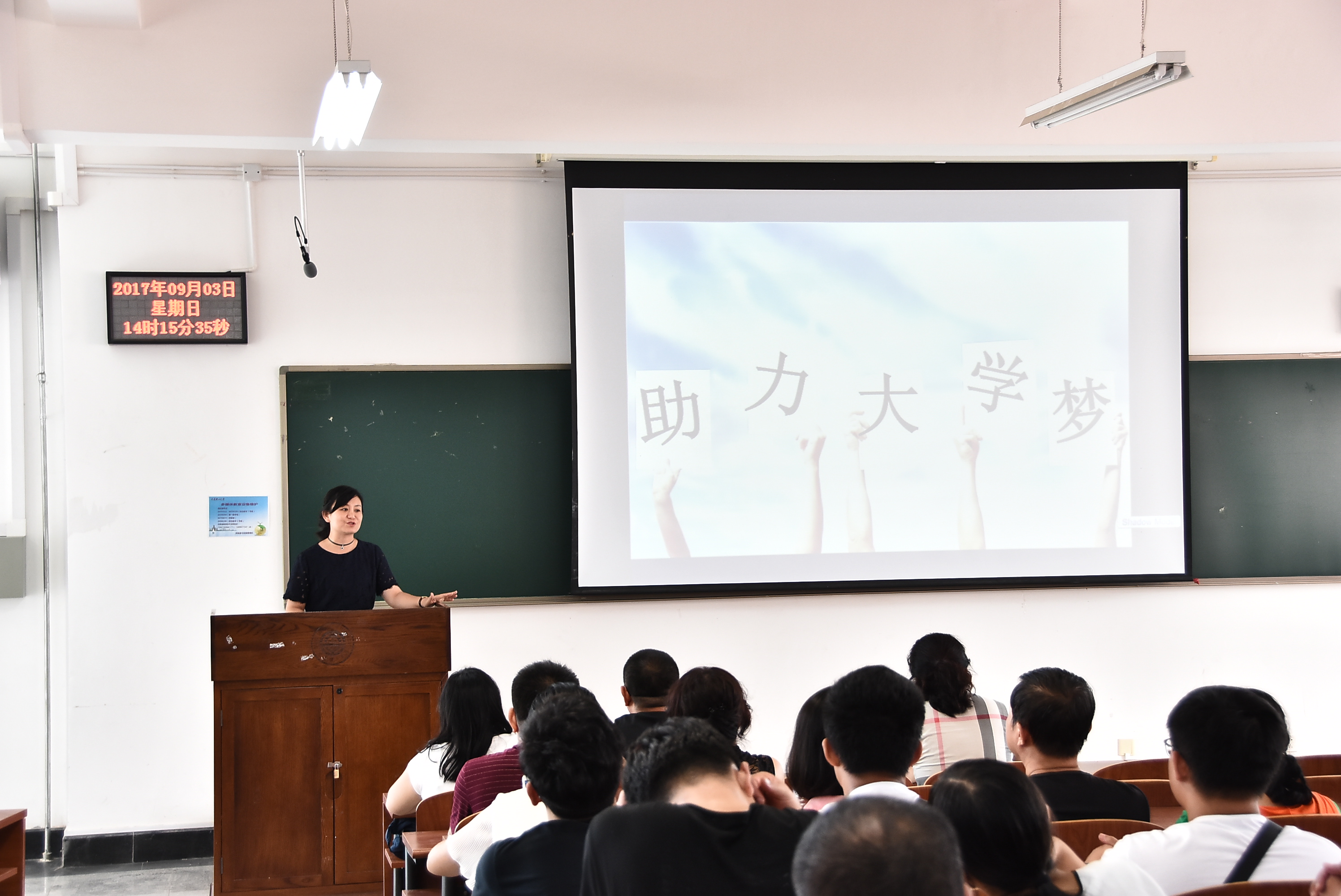 之后,党委副书记兼副院长同时也是2017级的新生辅导员杨木老师讲话,她对新生的到来再次表示热烈欢迎,并向各位家长展示了学院对学生们在未来学业发展以及生活等方面的规划与安排。