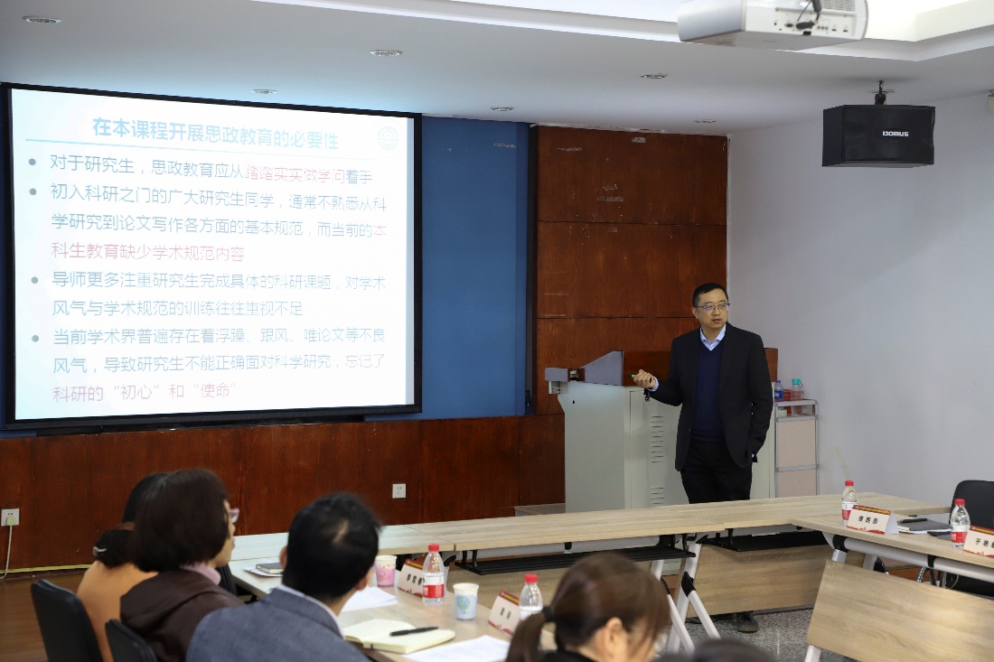 多宝网投院长赵纪军在会上做《“学术规范与写作”校级课程思政示范课经验介绍》报告,结合“弘扬科学精神、提升学术品味、普及学术规范、恪守学术道德”四个课程核心理念,详细讲解了该门课程的主要内容与目标效果。