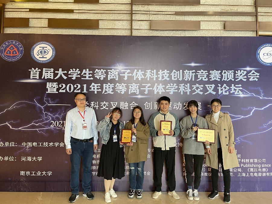 最终,我校参加初赛和决赛的11支队伍均取得了优异的成绩。在本届竞赛本科生和研究生同场竞技的情况下,我校本科生作品《低气压射频容性耦合等离子体源COMSOL仿真及实验验证》(物理学院,指导教师:张莹莹、宋远红)荣获特等奖,是15支获得特等奖队伍中为数不多的本科生队伍。作品《自中和微型射频离子推力器SRIT-4数值设计》(航空航天学院,指导教师:夏广庆、孙斌)、《新型等离子体手机消毒装置》(生物工程学院,指导教师:杨君)获一等奖;作品《等离子体果蔬去农残洗消一体机》(物理学院,指导教师:杨德正)、《介质阻挡放电等离子体改性电缆交联聚乙烯》(电气工程学院,指导教师:姜楠)、《一种低臭氧低温等离子体源的设计与开发》(物理学院,指导教师:杨德正)获二等奖;作品《等离子体-发射光谱法检测水产品中重金属一体机开发》(物理学院,指导教师:杨德正)、《双电极直流电弧炉熔炼氧化镁的数值模拟研究》(电气工程学院,指导教师:王振)、《氩气感性耦合等离子体中心体区和边缘鞘层内的输运过程解析》(物理学院,指导教师:赵书霞)、《基于空间探测等离子体元素检测技术研究》(物理学院,指导教师:杨德正)、《等离子扬声器》(电气工程学院,指导教师:张颖杰)获三等奖。