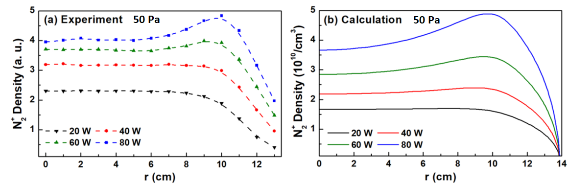 此外,PSEG团队研制了结构可变的大面积、多功能等离子体实验平台和多套CCP和ICP放电平台,并自主研发了射频磁探针、微波发卡探针、光探针、吸收光谱诊断系统、布拉格光栅测温系统、悬浮双探针等诊断工具和集成了商用的Langmuir探针、质谱仪、离子能量分析仪、光谱仪、ICCD及光致解离负离子诊断系统等。这些诊断手段为等离子体源多参数诊断提供条件。大量研究表明,MAPS的模拟结果与实验测量结果在量级和变化趋势上达到一致,证明了MAPS仿真软件的可靠性。