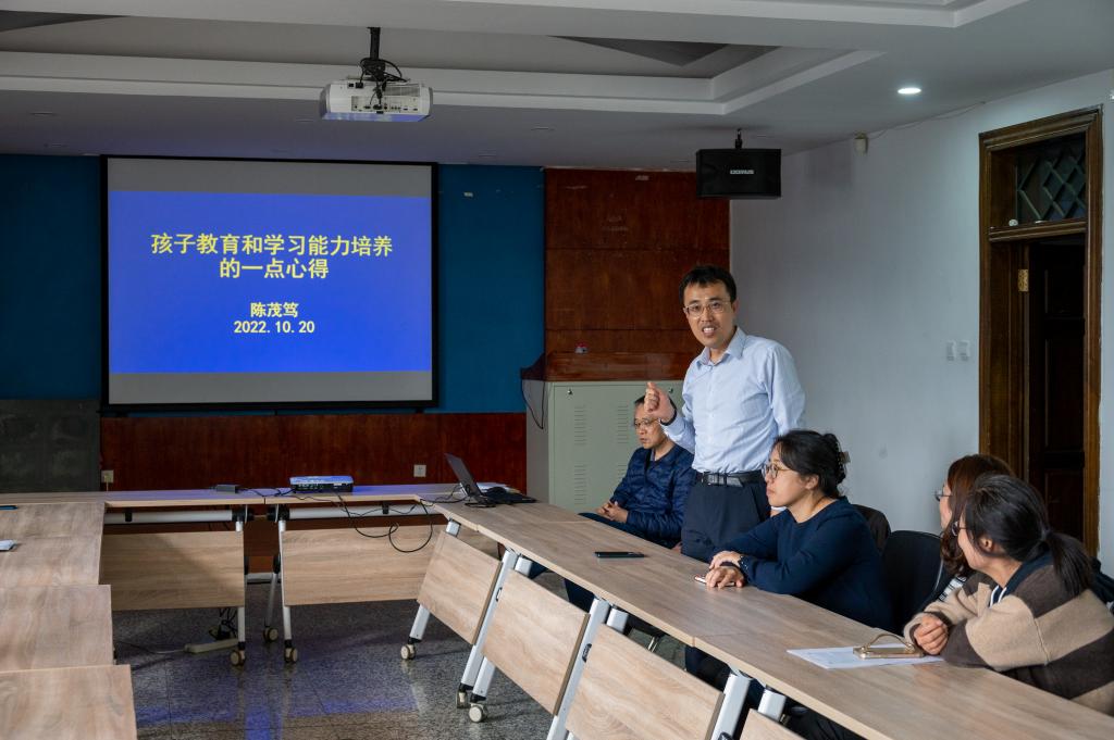 2022年10月20日,物理学院党委组织开展“一融双高”系列讲座(第二讲)。本次讲座旨在落实“幸福大工”建设要求,聚焦学院中青年教师子女教育,邀请到学院陈茂笃教授作《孩子教育和学习能力培养的一点心得》主题报告。