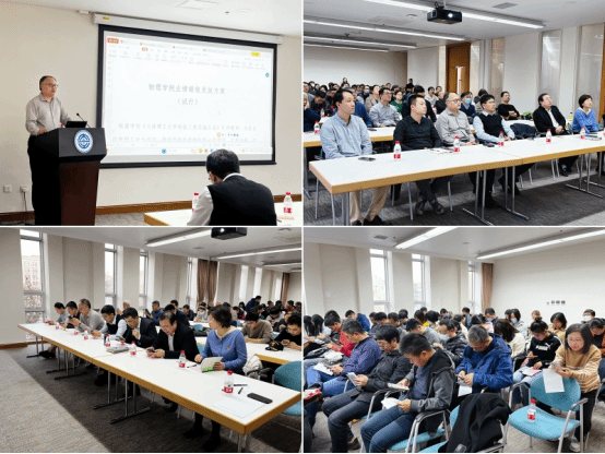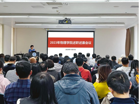 在行政工作汇报中,王正汹院长全面梳理了学院总体发展情况,介绍了2023年物理学院在师资队伍建设、人才培养、科学研究、国际合作与交流、招生和就业等方面的重要进展,并对下年度行政工作进行了规划。一是要进一步推进校院两级管理改革工作,激发广大教师干事创业的精神;二是要积极谋划重大重点科研项目,继续推动产学研融合;三是要制订人才引进政策,优化引进流程与目标考核体系;四是要进一步拉动优质生源占比;五是要继续探索拔尖人才培养模式,为学校419方案的顺利实施做好准备;六是要持续关注全院课程,确保大学物理理论和实验课程教学顺利进行。