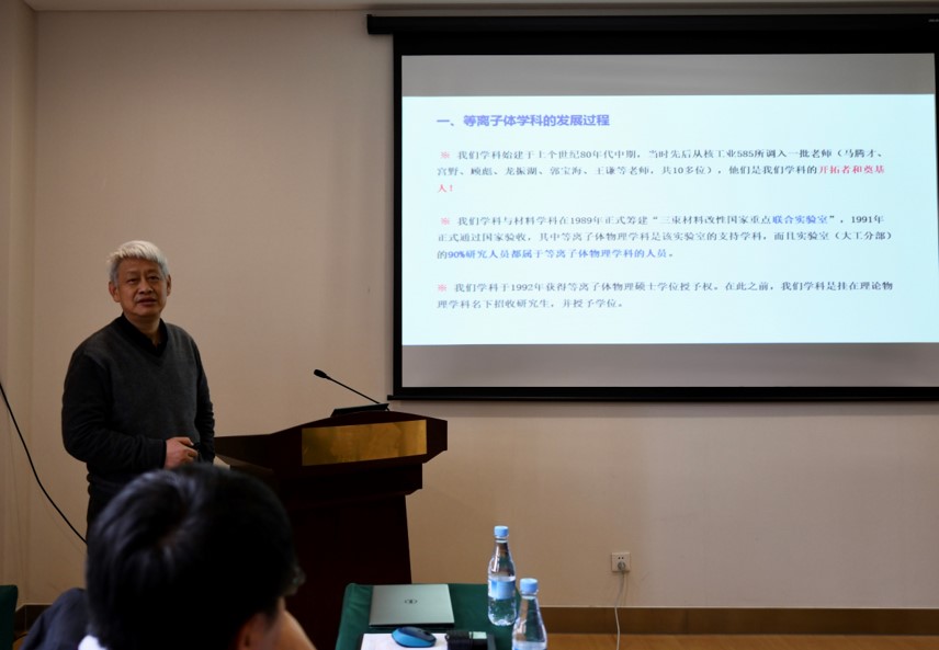 会议第三部分为学科发展讨论,王友年教授首先做了“等离子体学科的现状分析与面临的挑战”的报告,详细介绍了物理学院等离子体物理学科和三束实验室发展历史,回顾了等离子体物理科学与工程中心的成立初衷和发展历程,讨论了学科现在发展的主要优势和存在问题,鼓励年轻教师要敢于担当、努力肩挑起学科发展的使命。接下来的讨论环节,王德真教授提出中心及学科的发展需要做到加强同其它科研单位的合作、谋划大的科研装置建造等建议;王正汹教授指出,中心成员应该进行思想转变,更加积极主动的参与各项科研活动;宋远红教授对研究生培养、招生宣传等方面进行了介绍和建议。中心其他成员分别在实验室场地规划、研究中心宣传、科研项目申请、青年教师培养等方面进行分析及提出建议。通过此次学科发展研讨会的召开,加强了等离子体科学与技术中心成员之间的交流,理清了中心发展现状,明确了中心发展面临的机遇和挑战,为今后等离子体物理学科的进一步发展打下了良好的基础。此外,学科成员建议讨论会每年定期举行一次,及介绍各成员研究成果,加强内部合作并讨论面临问题。