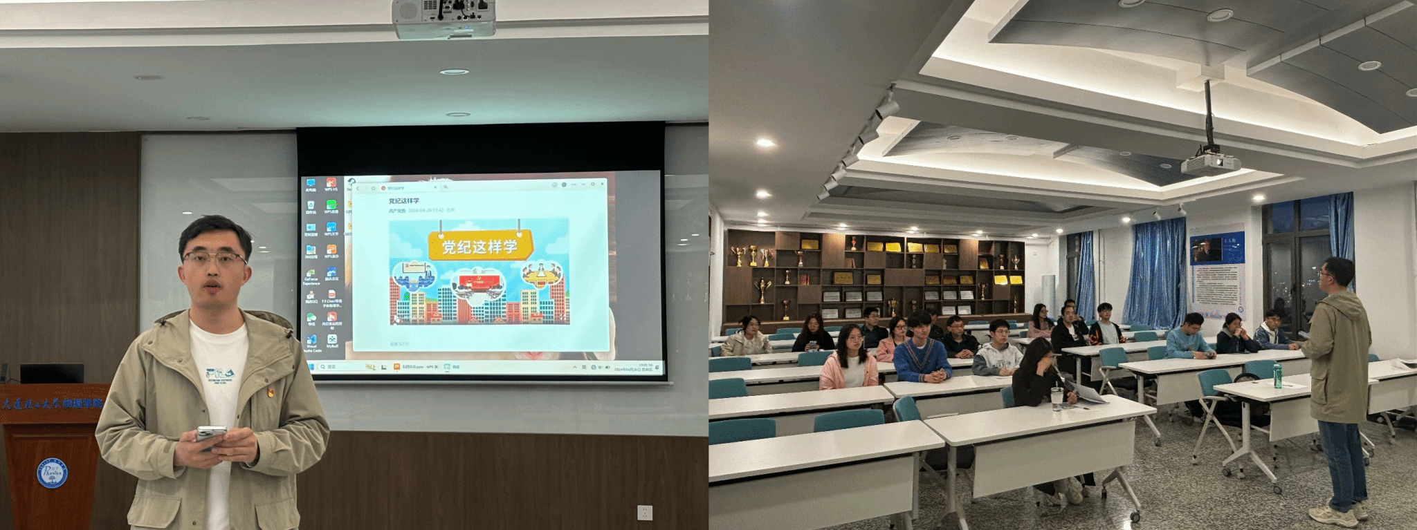 为积极响应党中央《关于在全党开展党纪学习教育的通知》的指示精神,贯彻落实《中共大连理工大学委员会关于在全校党员中开展党纪学习教育的实施方案》中的各项要求,推动《中国共产党纪律处分条例》(以下简称《条例》)入脑入心,物理学院硕博等离子体第三学生党支部于4月26日19:00在系楼322室召开“学习党规党纪,弘扬五四精神”主题党日活动,本次活动由支部书记李大正同志主持,支部全体党员参加。本次活动的主要内容有学习新修订的《条例》和开展“五四”主题党史知识竞赛。