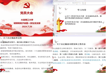 为深入学习党的二十届三中全会精神,领会党中央精神,物理学院硕博等离子体第一学生党支部于2024年7月26日召开线上党员大会,共同学习《中共中央关于进一步全面深化改革、推进中国式现代化的决定》,会议由党支部书记宫丽悦主持,支部全体党员参加。