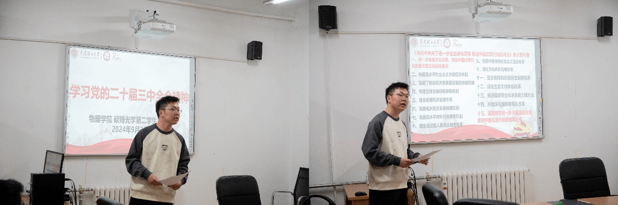 大会第三项,进行专题党课。本次专题党课内容为学习党的二十届三中全会精神。由田杰同志带领大家学习在党的二十届三中全会上通过的《中共中央关于进一步全面深化改革、推进中国式现代化的决定》(以下简称《决定》),《决定》深入分析了推进中国式现代化面临的新情况新问题,科学谋划了围绕中国式现代化进一步全面深化改革的总体部署,是指导新征程上进一步全面深化改革的纲领性文件。支部成员深入学习了党的二十届三中全会精神,准确理解了《决定》的精神实质和内涵要义,表示会切实把思想和行动统一到党中央决策部署上来。