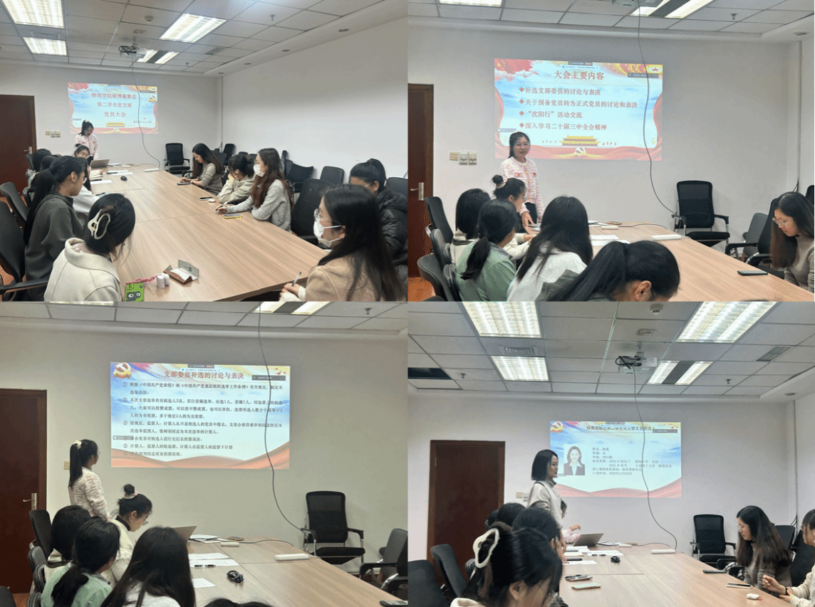 为深入学习贯彻党的二十届三中全会精神,强化理论武装,物理学院硕博凝聚态第二学生党支部于11月25日在科技园C座510会议室召开全体党员大会。本次会议由支部书记杨秋萍同志主持,会议主要内容为支部委员的补选、预备党员的转正以及学习习近平总书记关于全面深化改革的一系列新思想、新观点、新论断。