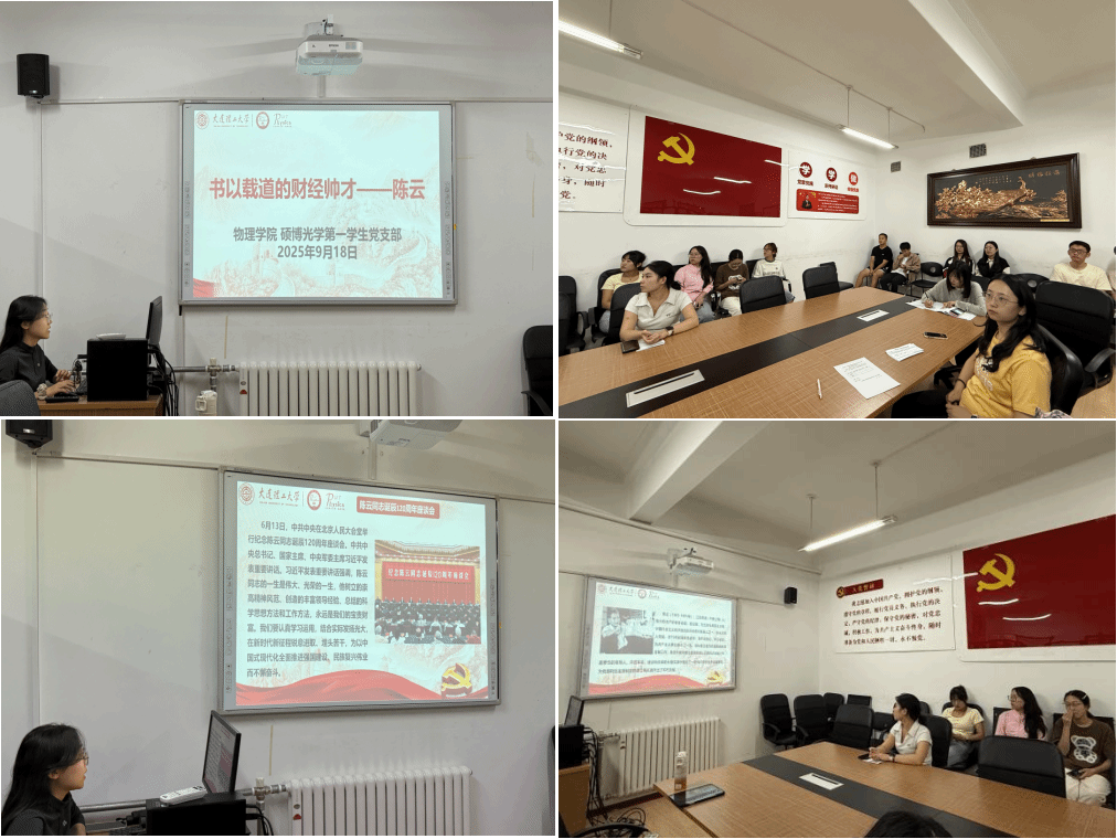 为丰富党员理论储备,锤炼党性修养,同时进一步加强党支部组织建设,物理学院硕博光学第一学生党支部于2025年9月18日18:30在物理楼422会议室召开党员大会。大会的主要内容是学习习近平总书记关于纪念陈云同志诞辰120周年座谈会上发表的重要讲话和党支部委员补选。本次会议由党支部书记吕拓同志主持。