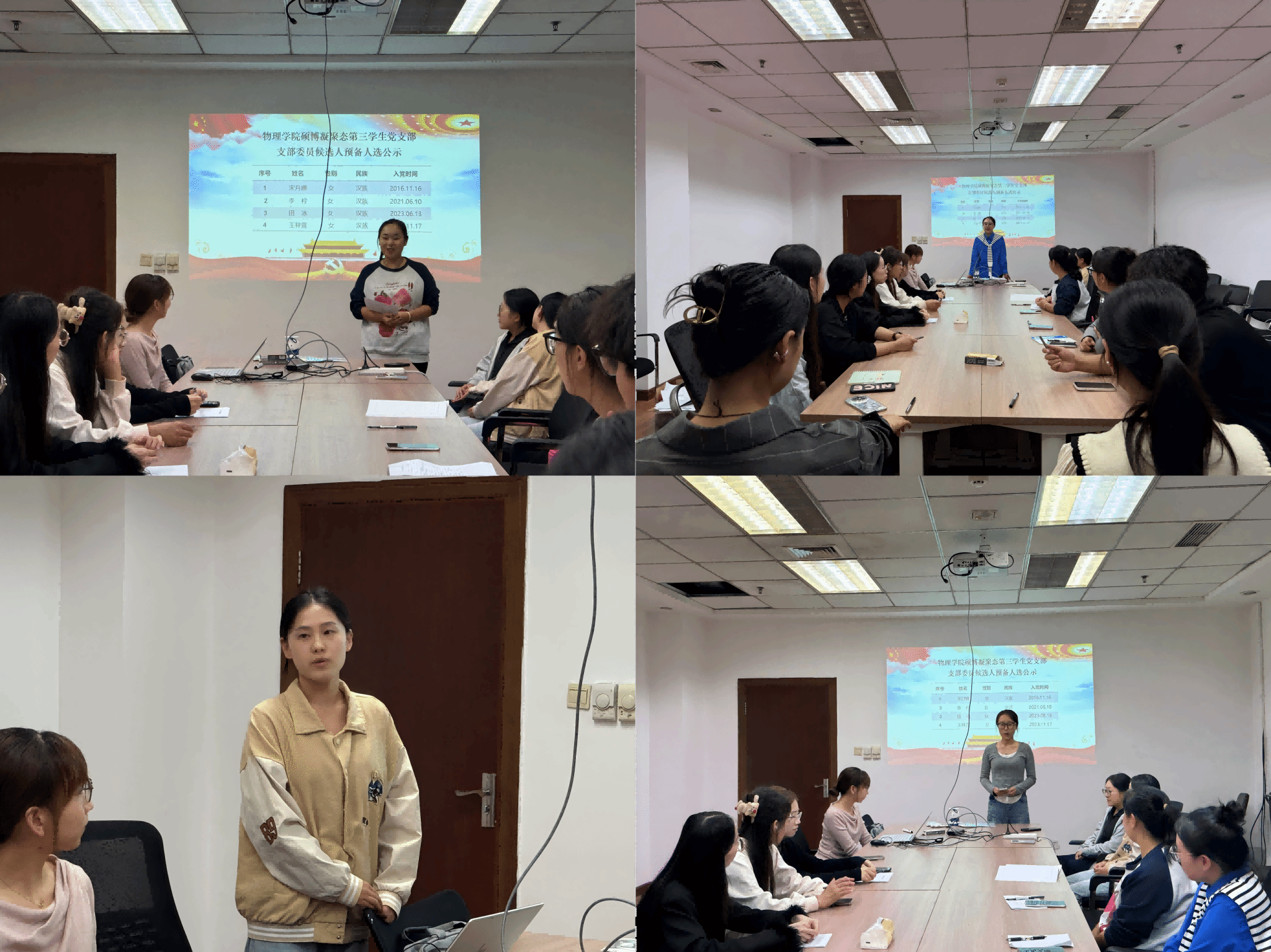 为夯实组织基础,激发党支部活力,9月23日晚,物理学院硕博凝聚态第三学生党支部于科技园写字楼C座510会议室召开新学期的首次党员大会,会议内容包括欢迎新入学的党员同志以及开展党支部委员补选工作。会议由党支部书记赵博同志主持。
