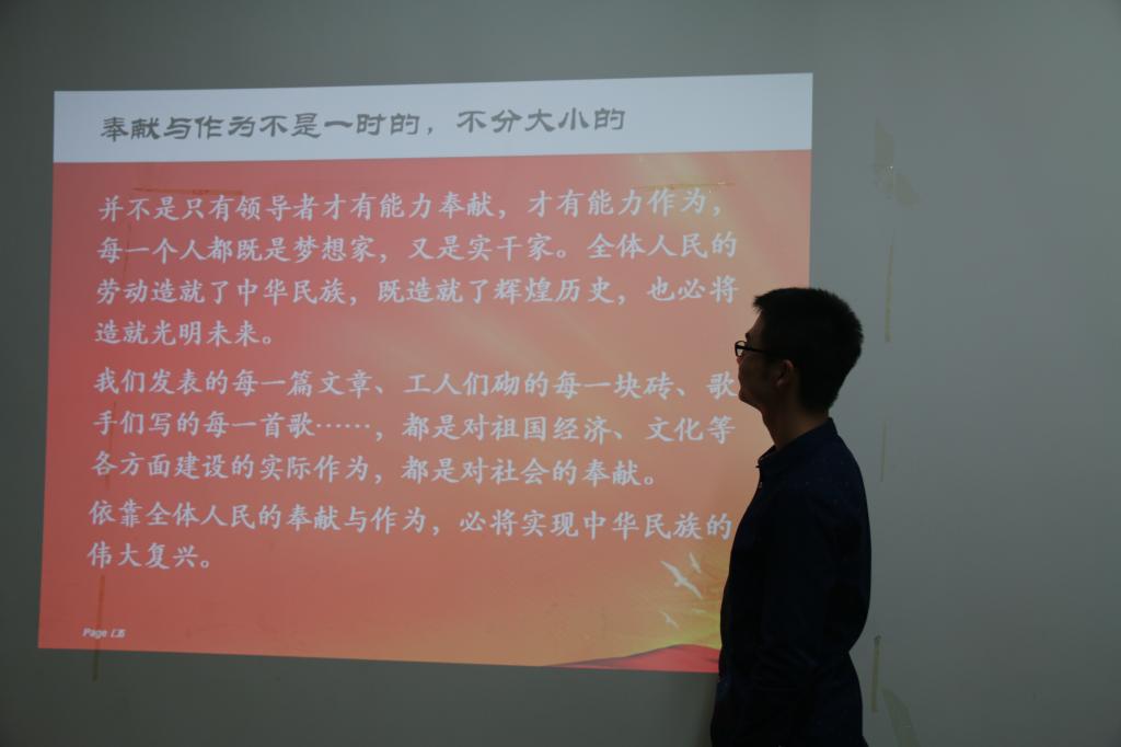 最后,支部指导教师王乔做了总结。她指出,党的宗旨是“全心全意为人民服务”,也是党的最高价值取向,也是衡量合格党员的标准。入党誓词中也提到:“随时准备为党和人民牺牲一切”。这就是奉献,是所有党员的宗旨和追求。