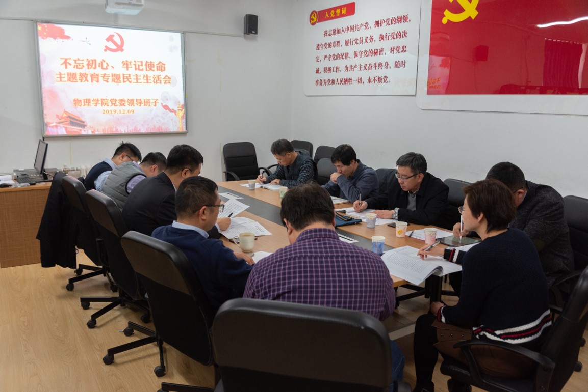 12月9日下午,物理学院党委领导班子召开“不忘初心、牢记使命”主题教育专题民主生活会,学院党委领导班子全体成员参会,院长赵纪军列席。学校党委常委、副校长姚山出席会议,党委学生工作部部长郭驰,运载学部党委副书记兼副院长、纪委书记杨玉林列席会议。会议由物理学院党委书记王正汹同志主持。