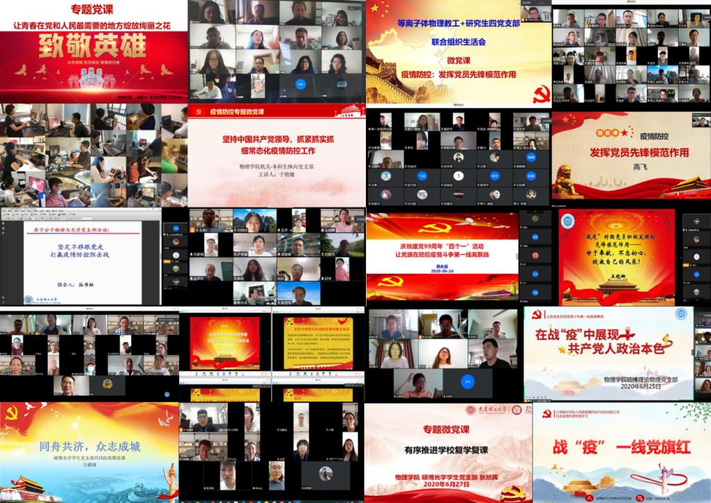 6月20日以来,在学院党委的部署下,物理学院各师生党支部先后开展主题党日活动,围绕疫情防控的特定主题召开专题组织生活会,举办微党课活动。学院党委号召党委委员、党支部书记、研究生党支部第一书记(由青年教师党员担任)积极参与宣讲,各主讲人或着重讲解制度优势、文化优势、党的领导优势,或着重讲解抗疫前线的感人瞬间、身边同志的感人瞬间,或结合学科特色讲解相关研究在疫情防控中的应用等等,均取得良好的党课效果。