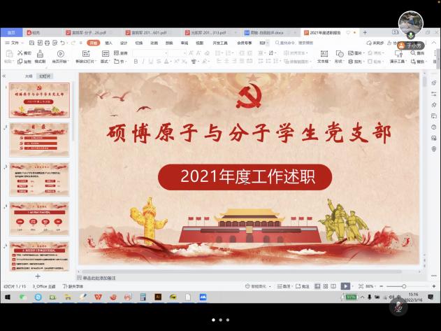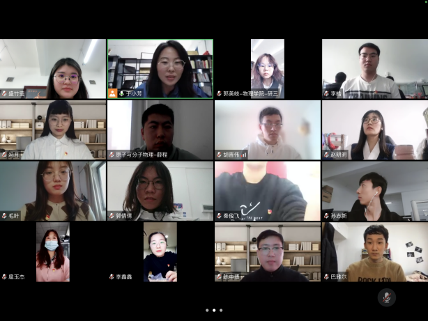 按照大连理工大学党委和物理学院党委的统一部署,硕博原子与分子学生党支部在严格落实疫情防控相关要求的基础上,于2022年3月16日下午,采取线上形式召开组织生活会。会议由支部书记于小芳同志主持,全体党员参加,化工学院党委副书记刘阅老师、物理学院副院长韩永昌教授到会指导。
