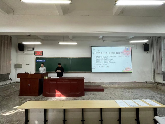 大会开始,崔紫宵同志宣布会议议程,并报告应出席和实际出席会议的党员人数,说明开会的主要内容、注意事项与具体要求。会议第一项由新生党员武佳、安苑静、王馨悦做自我介绍,通过支部党员之间的交流与沟通,新生党员端正了入党动机,加深了爱国爱党的情怀。