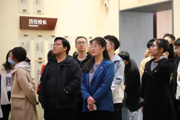 活动伊始,同学们跟随着讲解员的步伐,有序进入展厅。讲解员同学对序厅、沿革厅、人物厅、校友厅、国际礼品厅等五大展厅展开详细的讲解。