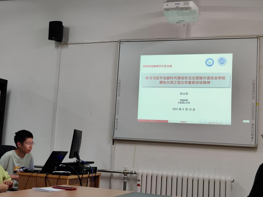 活动第二项为党课学习环节。首先由陈永睿同志分享主题党课《学习习近平总书记在新时代推动东北全面振兴座谈会和视察哈尔滨工程大学重要讲话精神》。在座谈会上,习近平总书记强调,推动东北全面振兴,根基在实体经济,关键在科技创新,方向是产业升级。在此次座谈会上,习近平总书记对东北全面振兴作出全面部署。同时,这一切都是在强国建设、民族复兴的战略安排中谋划和推进的。在视察哈尔滨工程大学的时候习近平总书记强调,年轻一代成为奋力拼搏、振兴中华的一代,实现第二个百年奋斗目标就充满希望。 青年学子要树牢科技报国志,刻苦学习钻研,勇攀科学高峰,在推进强国建设、民族复兴伟业中绽放青春光彩。我们要始终牢记总书记的殷殷嘱托,把习近平总书记的重要讲话精神作为行动指南,深入学习贯彻习近平新时代中国特色社会主义思想和党的二十大精神。