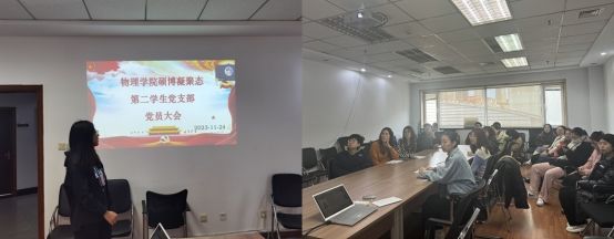 为进一步加强基层党组织建设,不断壮大党员队伍,为党组织注入新鲜血液,增强基层党组织的创造力、凝聚力和战斗力,硕博凝聚态第二学生党支部于2023年11月24日中午12时30分在科技园C座510会议室采取线上与线下相结合的方式召开了支部党员大会。本次会议主要内容为发展对象杨佳姝同志转为预备党员的表决与讨论以及党支部换届选举工作,本次会议由支委杨秋萍同志主持。