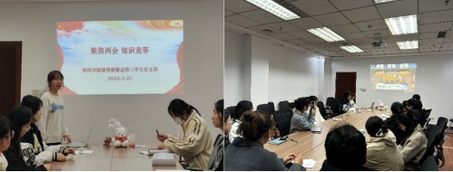为深入学习贯彻全国两会精神,把握时政热点,紧跟时代步伐,以全国两会圆满落幕为契机,物理学院硕博凝聚态第三学生党支部于2024年3月21日在科技园写字楼C座510会议室开展“聚焦两会,知识竞答”主题党日活动,掀起支部党员们学习全国两会精神的热潮。