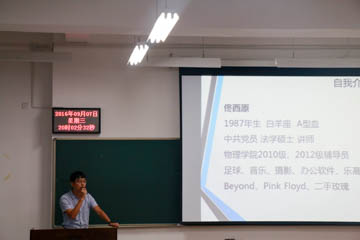 9月7日晚,物理与光电工程学院2016级新生教学管理与专业及《大学生手册》宣讲会于综合教学二号楼B406顺利召开。物理学院副院长周玲教授、党委副书记兼副院长杨木老师、团委书记兼16级辅导员佟西原老师参加宣讲会。