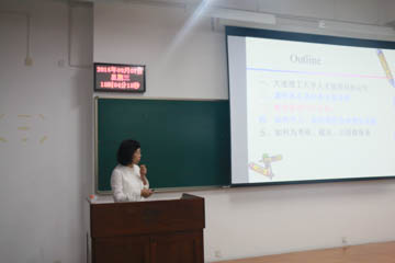 宣讲会开始,首先由周玲教授对学院概况及物理学院学生的培养计划进行了简单的介绍。周玲教授向在场新生简述了大学四年的课程体系及培养方案,从专业设置与专业教学等方面为学生展示了物理学院的特点。随后周玲教授总结了往届学生的毕业发展方向,让同学们对物理毕业生的去向有了一个大致的了解,让同学们能够更好地规划自己的大学生活。周玲教授强调,物理学院是一个学风浓厚的学院,我院学生应持有一种热爱知识、崇尚科学、相信真理的精神品质,善于利用各种教学资源,学在大工、学在物理。