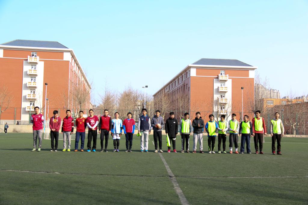 2017年3月12月9:00福佳足球场,物华杯决赛准时开始。虽然天气有点冷,但是丝毫没有影响到大家的热情,此前三战全胜且未失一球的大二A队士气正旺,而大四队则占据着心理和经验上的优势。在主裁黄致远的一声哨响下,比赛正式开始。