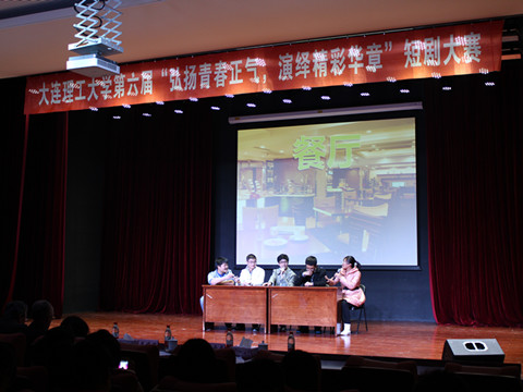 在灯光和掌声的环绕中,比赛正式开始。第一项是两组内部同学表演革命主题短剧,随后为观众们展示的是六组参赛短剧,在其中还设有简短而富有趣味互动环节。我院与机械学部携手为大家呈现的精彩短剧为第五组参赛作品。舞台上,同学们配合默契表演精彩;舞台下,观众们全神贯注,热情喝彩我院参与表演的这部短剧无论是剧情还是主题,都十分贴近大学生活,讲述了“学霸寝室”的四名男生由堕落沉迷转变为斗志昂扬并最终取得佳绩的过程,并在结尾处强调了“奋斗”对于现当代大学生的重要意义。