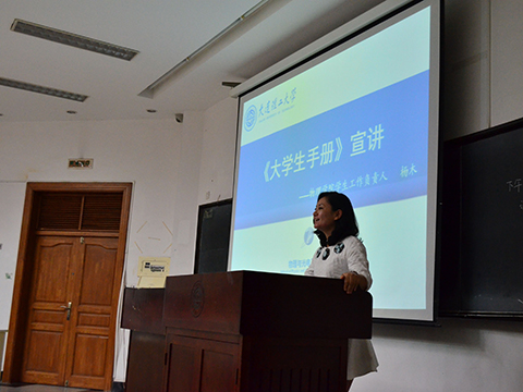 9月3日晚,物理与光电工程学院14级新生大学生手册宣讲会于综一151顺利召开。出席本次宣讲会的有物理学院副院长周玲教授、党委副书记兼副院长杨木老师、14级辅导员梁勇老师。