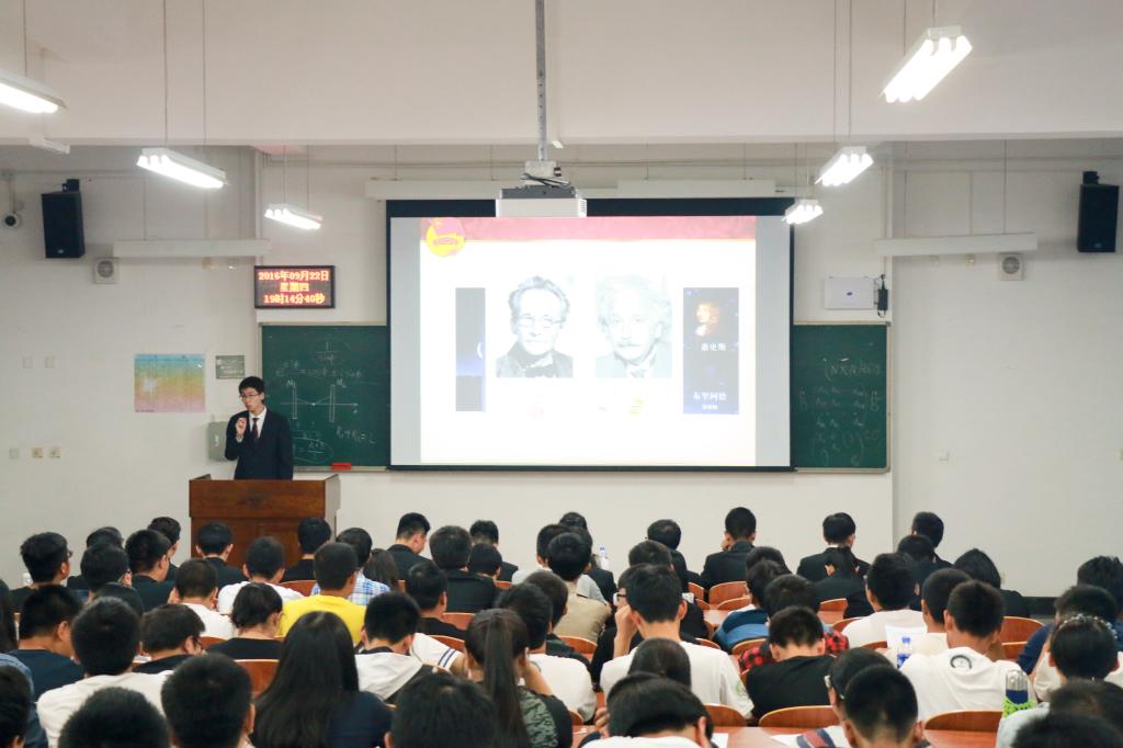 宣讲会伊始,物理学院学生会主席王序涛为2016级新生们简单介绍团学社各部门的工作职能,并为大家刚开始的大学生活提出建议。团委副书记刘婉莹在台上发表了自己对于学生工作的见解,期待16级新生们能积极加入团学社大家庭。经过开场的简单介绍,接下来团委各部门部长陆续上台进行招新宣讲。组织部、青年志愿者协会、实践部......他们以团委理论作为支持并服务于学生、学校、社会。各种社会实践活动、理论学习活动、大型校园文艺活动都能够锻炼同学们各方面的能力。接下来是宣传中心的介绍,新闻部、宣传部等部门致力于学院建设和学生工作的各方面,结合多种媒介关注并发表学院动态。稍后是学习部、外联部等各部门的介绍,各中心主任及部门部长或是热情洋溢,或是幽默风趣,或是犀利简洁,用不同部门的不同风格向同学们介绍了本部门的职能及特色,力求将部门的精华展现给在座同学。