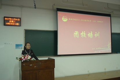 11月1日晚6点30分,物理学院于综合教学二号楼B401开展本学年第二次三级团校培训,在本次培训中团委书记以自身经验为同学们带来指导,进一步提高基层团学干部的工作水平,服务团员能力以及思想素质,并加强对十九大精神的学习。出席本次活动的嘉宾有团委书记兼2015级辅导员纪丹红,学生会主席兼团委副书记董新宇,团委常务副书记李睿意以及团学社各部门部长。
