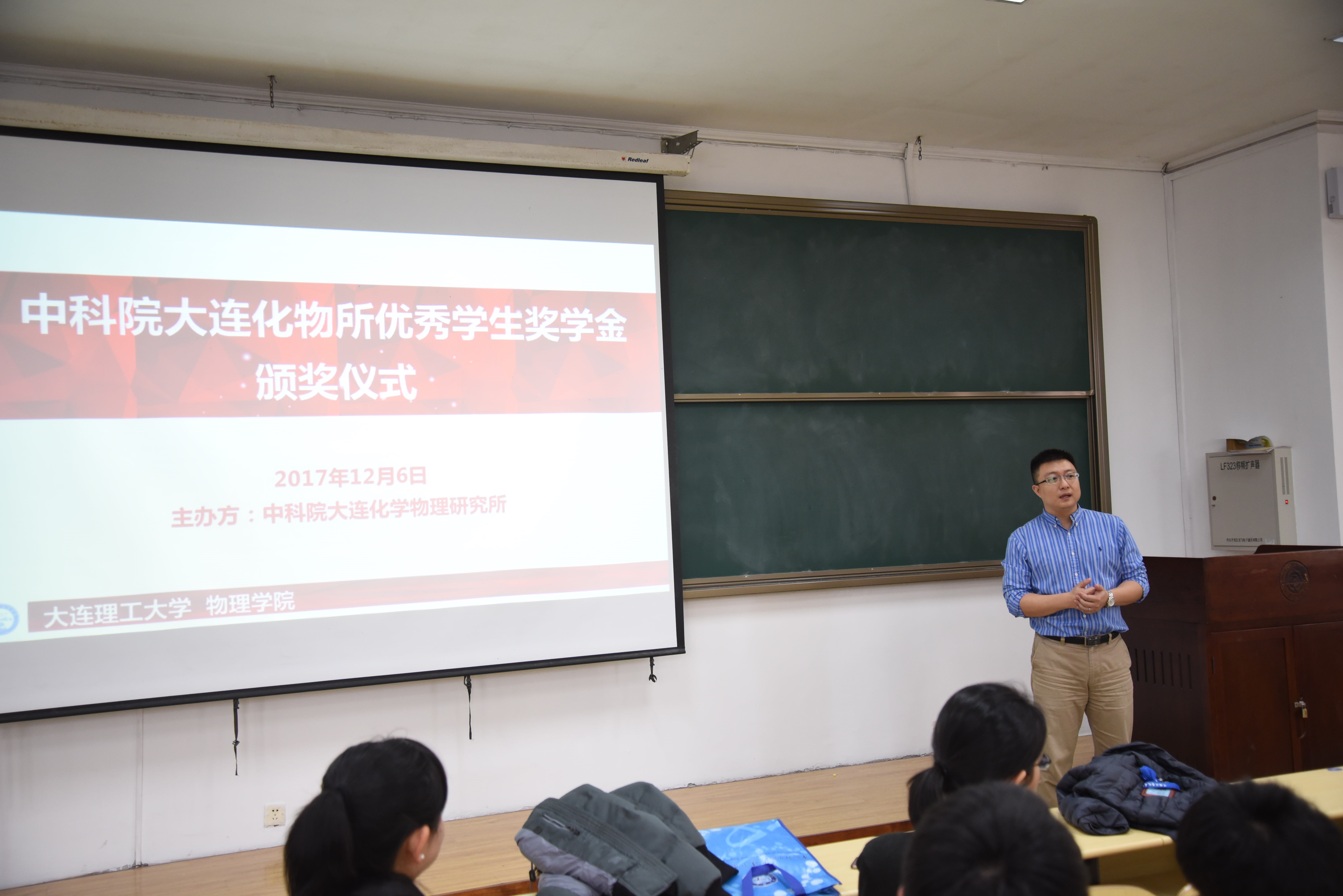 12月6日中午,中科院大连化物所优秀学生奖学金颁奖仪式在建馆105举行,出席此次活动的嘉宾有来自大连化物所的于老师、熊老师以及物理学院党委副书记杨木。活动由物理学院16级辅导员佟西原主持。
