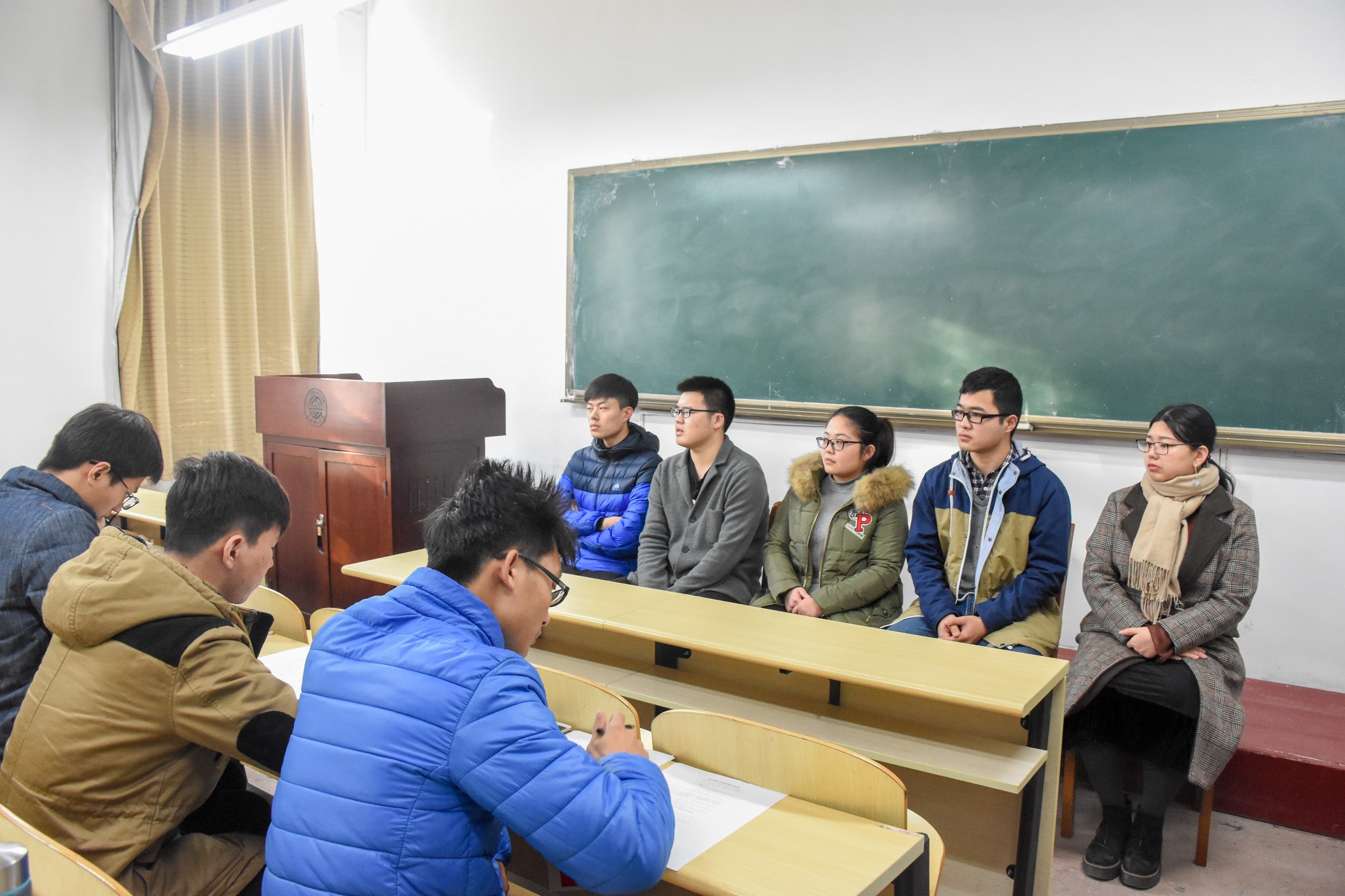 为响应十九大的号召,加强大学生的社会实践能力,12月24日下午1点半,2017-2018学年第二期大连理工大学社区挂职活动白山路街道挂职人员面试于第二教学馆116教室开始,本次面试由物理学院实践部和建筑与艺术学院实践部共同承办。出席本次面试的评委有校团委社区挂职中心副主任邱杰、能源与动力学部团委社区挂职中心主任陈翰以及副主任邹京辰、牛超、牛晶晶。