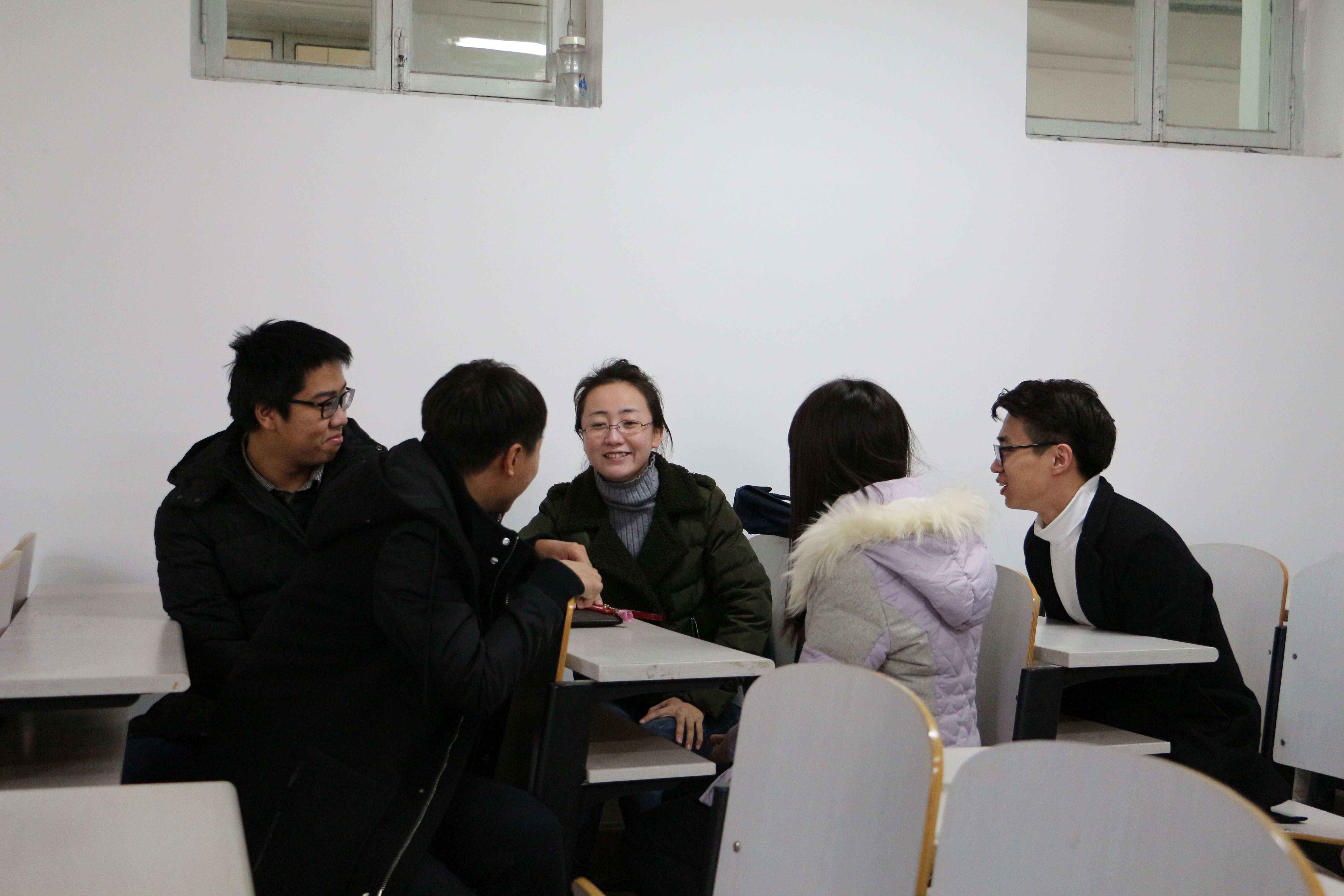 然后,各教室内的团支书组织团员们就采访视频的思想内容进行小组讨论,很多同学都发表自己的看法,纪丹红老师也参与到同学们的讨论中,亲切地与同学们交流,进一步让团员们理解党的十九大精神,并把这些理论知识付诸实践。