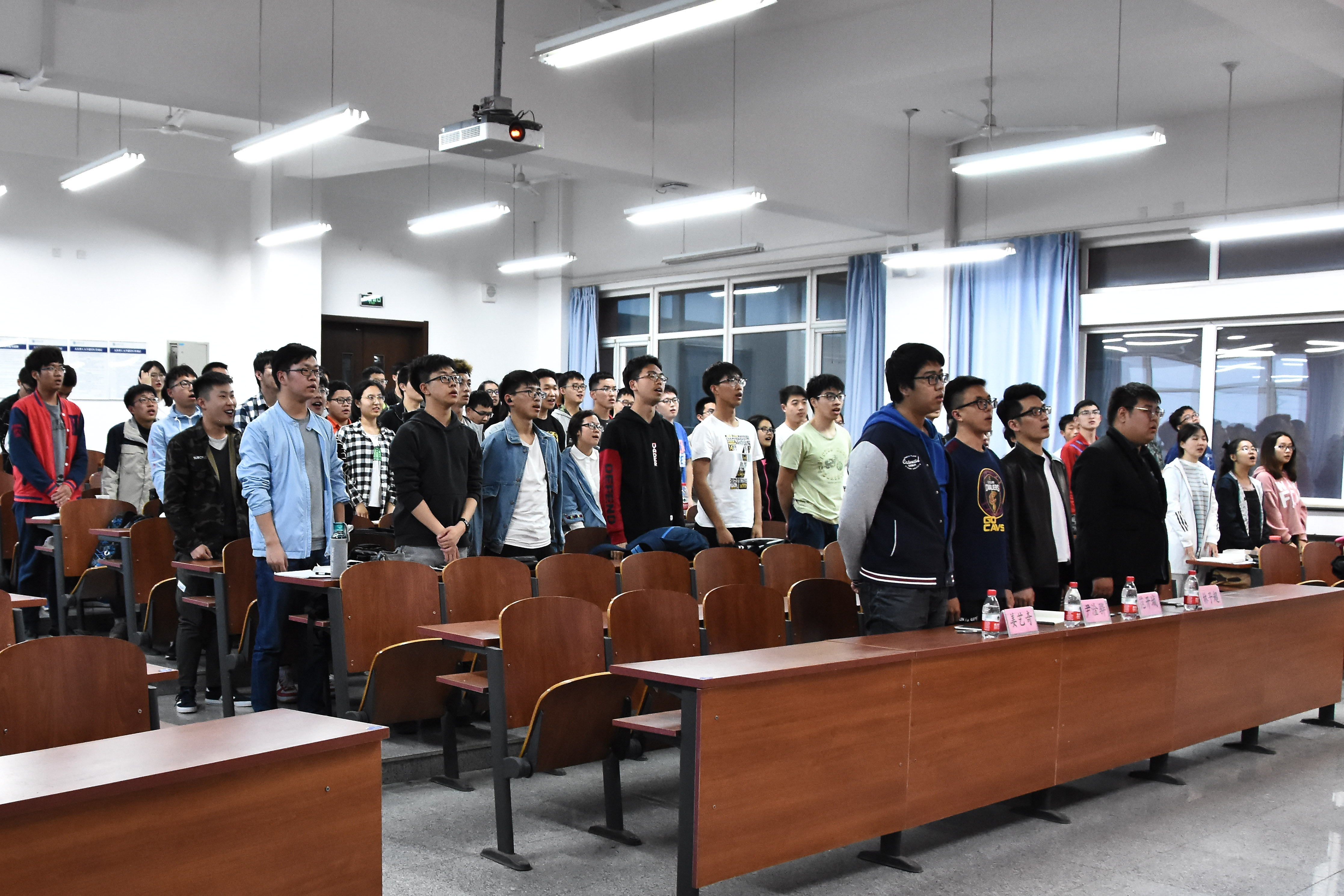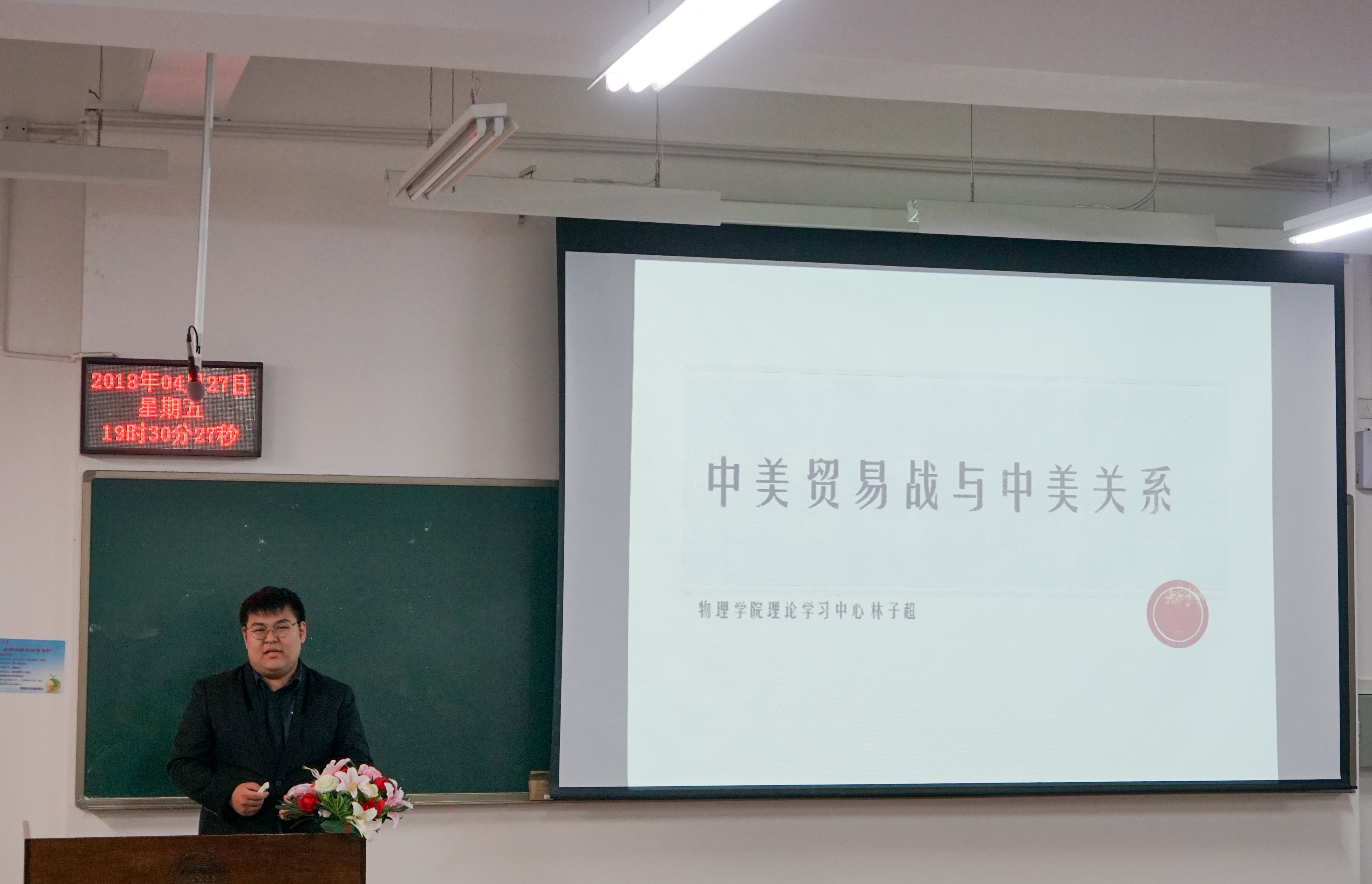2018年4月27日,物理学院在综合教学二号楼B406召开第五期团校培训。本期培训的主题是新时代大学生的使命与担当。当今中国正在以越来越开放的姿态融入世界发展潮流,在经济全球化进程日益加快的今天,大学生作为国家发展、民族振兴的中坚力量,培养他们的国际视野,是中国顺应全球化发展的关键,也是中国高等教育顺应时代要求、为社会发展和人类进步培养高素质人才的时代使命。因此物理学院组织部和理论学习中心共同开展本期团校,到场的嘉宾有学生会副主席兼办公室主任尹淦骅,学生会副主席兼体育部部长范开城,社团联合会主席姜艺奇,以及团委理论学习中心副主任林子超。