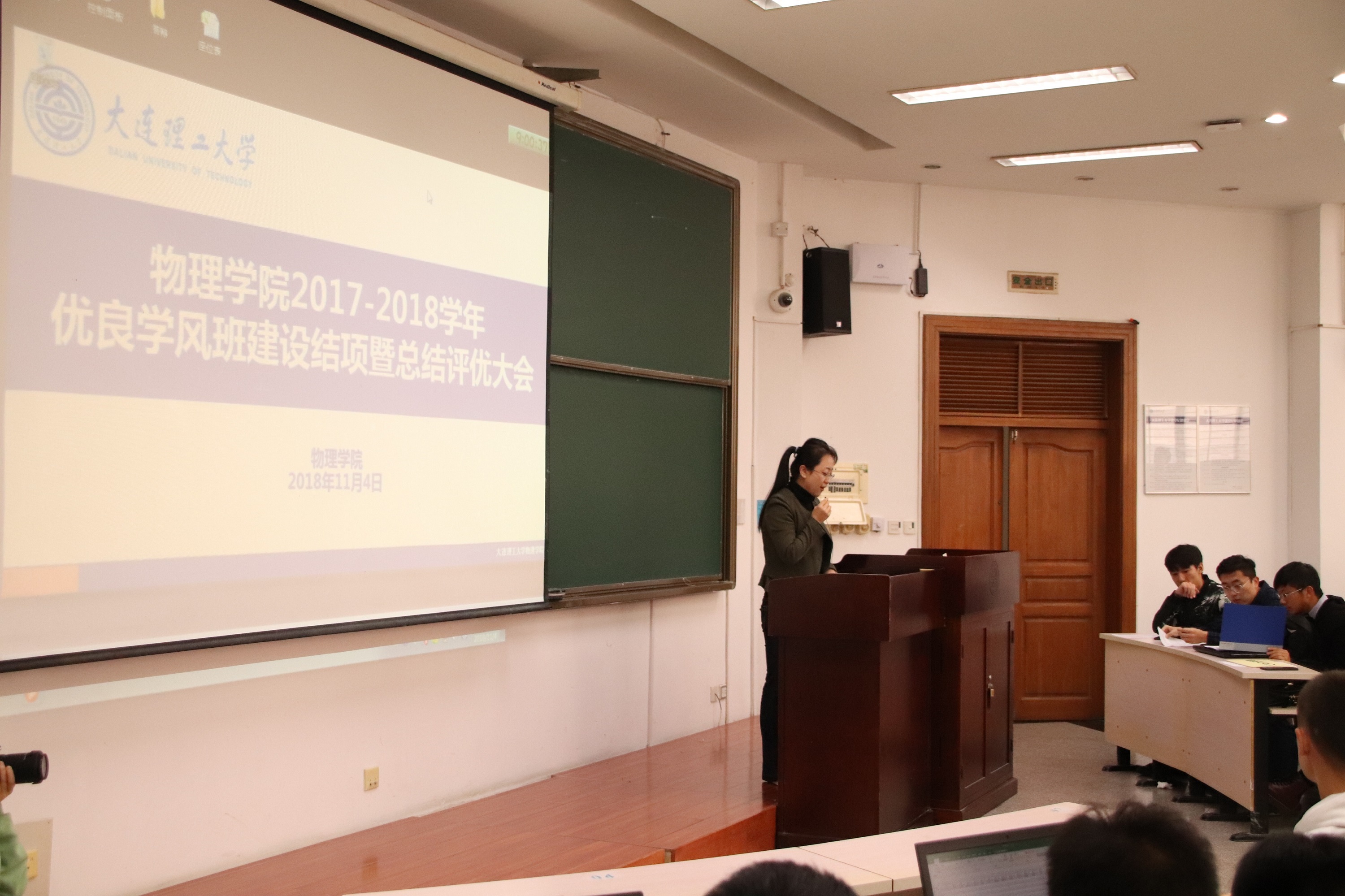 各班答辩结束后,主持人收取评分,得出最后结果。最后物理学院优良学风标兵班为物1702班,并将推荐到学校参加校优良学风标兵班打擂。物理学院优良学风班为物大珩1501班、物大珩1601班、物1503班、物大珩1701班、物1701班。物理学院优良学风进步班为中白1701班。其中,将推荐物1702班、物大珩1501班、物大珩1601班、物1503班为大连理工大学2017-2018学年优良学风班,同时推荐物1702班、物大珩1501班、物大珩1601班为大连理工大学2017-2018学年先进班集体。