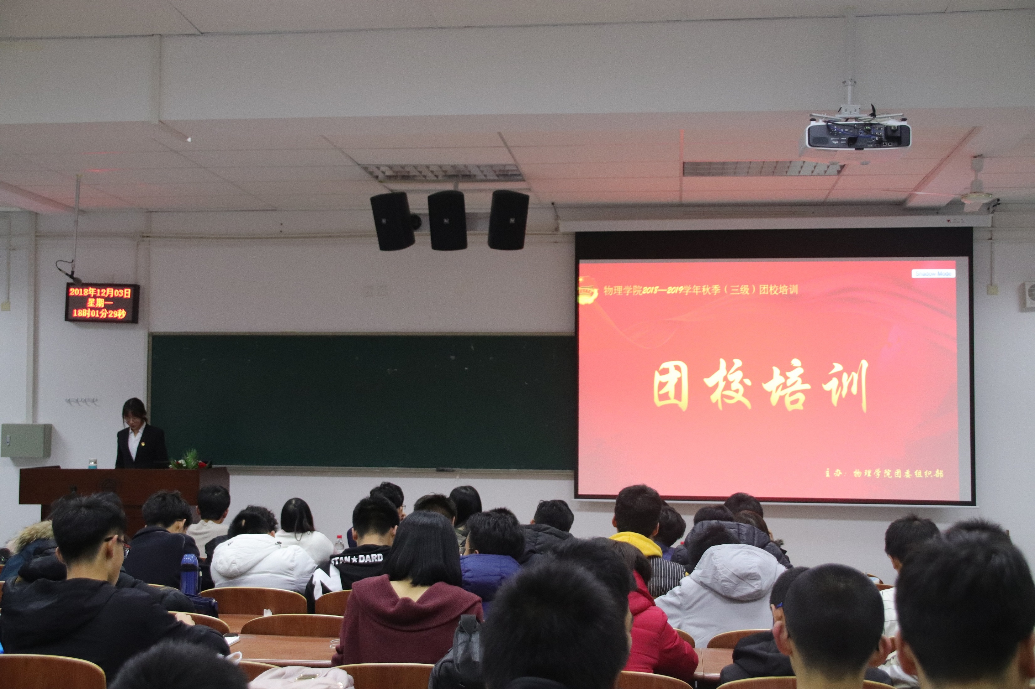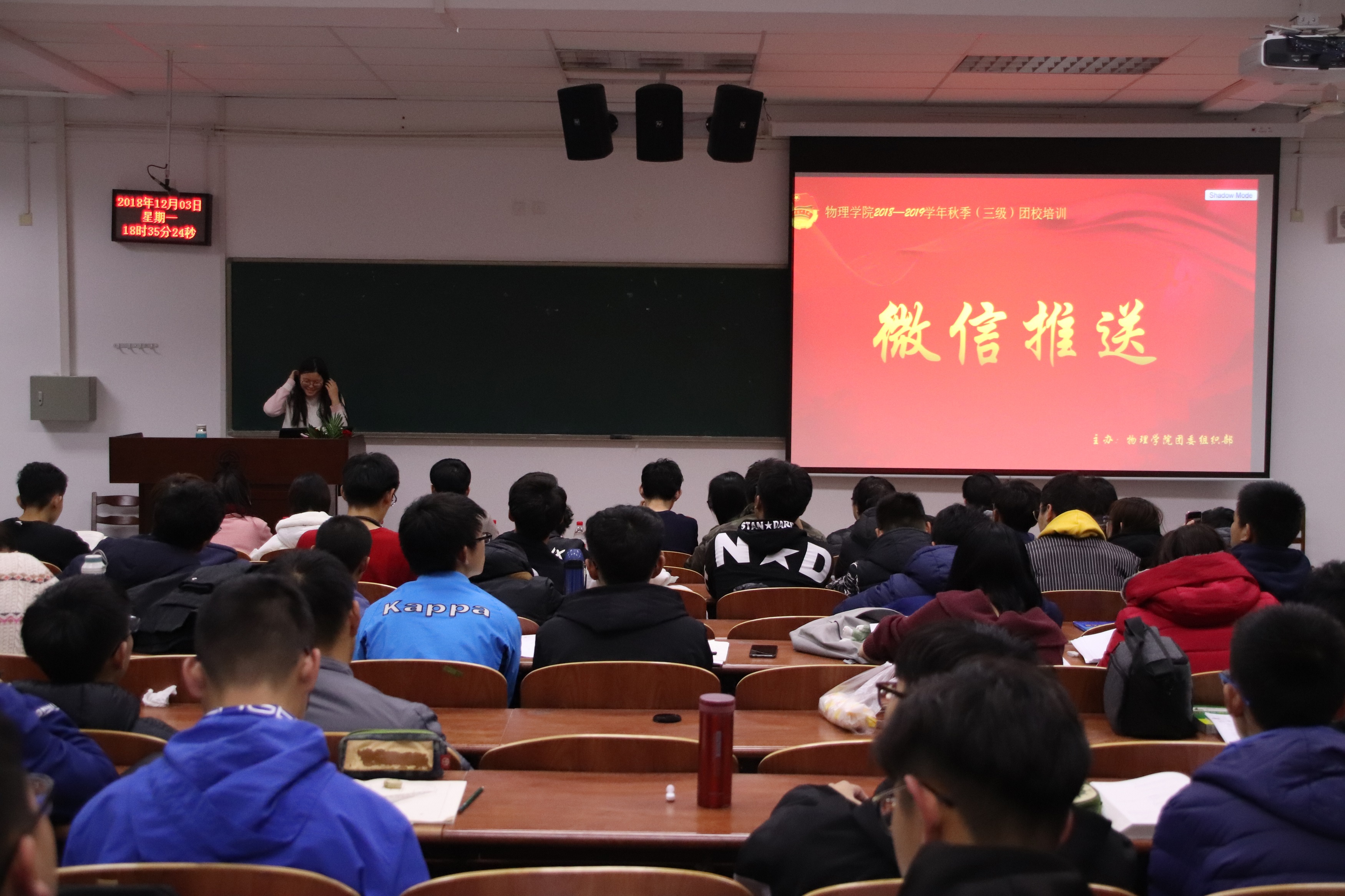 为培养团学骨干的公文写作能力及新媒体制作能力,提高团学骨干工作效率,物理学院于12月3日晚上六点在综合二号教学楼B103教室举办第五期团校培训。此次团校邀请物理学院团委组织部副部长何浩、新媒体部副部长刘思颖主讲,参加培训的嘉宾有学生会主席边于等各学生部门成员。