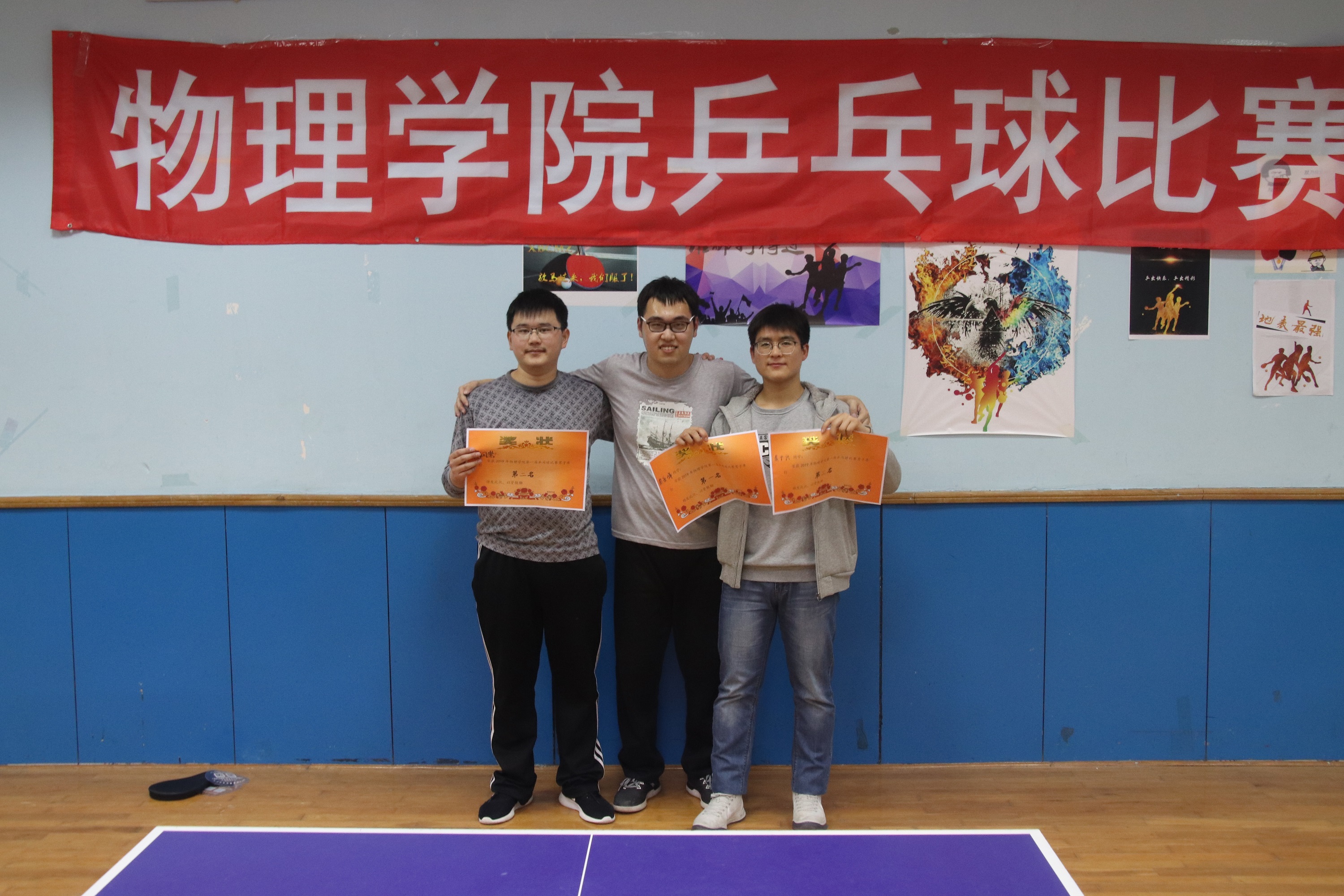 参加比赛的同学们个个精神抖擞,意气风发。裁判在进行赛事安排和规则的宣讲后,进行小组分配,物理学院的乒乓球比赛也正式打响。击打乒乓球的声音随着运动员手腕运动速度的加快愈发清脆。不一会儿,场上运动员便已经大汗淋漓,脱掉外套,全力拼搏,赛场的竞争更加激烈。一小时后,各个小组就陆续决出小组前二的人员。小组赛后,剩下的同学们开始了更加紧张的比拼。在短暂的休息后,就开始更加激烈的6进3淘汰赛,队员纷纷亮出自己的绝活,使出让人惊叹的招式,一时难解难分。随后,进入男子组决赛,双方更是互不相让,长球、短球,发球抢攻、侧身攻,运动员们运用滑步、跨步、交叉步等技巧,紧紧追赶乒乓球,争夺比分。窦润嵩凭借成熟稳定的技术,2:0取得开局优势,但蔡岳丰同学顶住压力,稳定自己的球风,进行5局鏖战之后,最终成功夺魁。