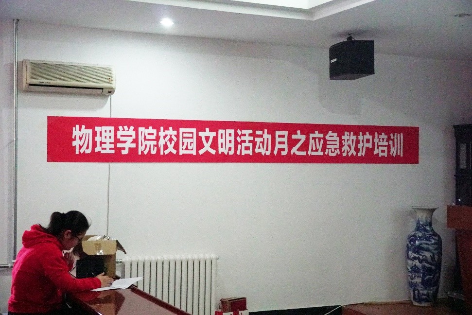 为提高同学们的急救意识,增强学生们的应急救护能力,物理学院红十字协会于4月21日上午9:00在物理系楼322举行应急救护培训。进行培训的志愿者有邹玲玲、张钟悦、刘明洋、王晨浩和刘柏良。