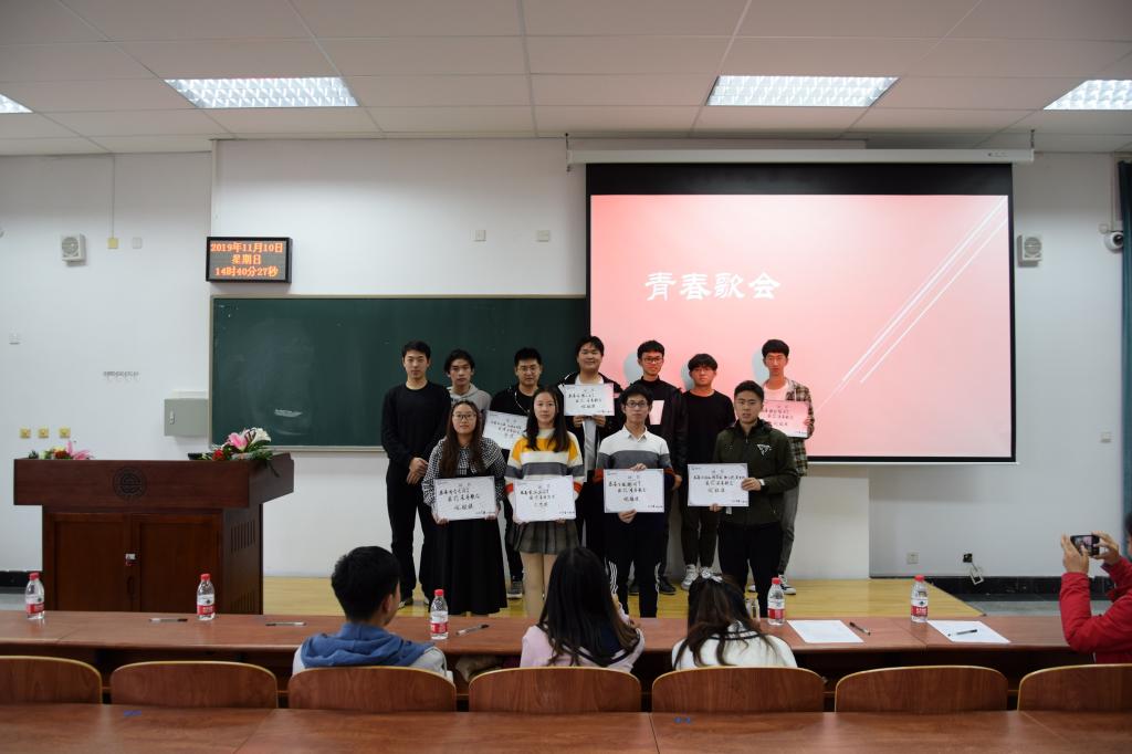 下午两点三十分,十组选手两轮的竞演全部结束。成绩当场计算并公布一、二、三等奖获得者与优秀奖获得者,由物理学院理论宣传中心部长李雨萌书写奖状并颁发奖品。下午三点整,青春歌会圆满结束,参加歌会的评委、观众与选手有序离场。