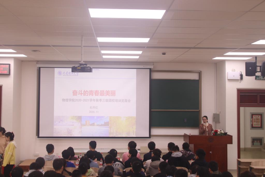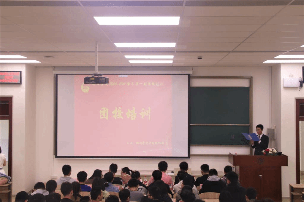 为进一步提高基层团学干部的工作水平和服务能力,提高学生干部的思想素质和组织能力,物理学院于2020年11月1日上午9点在建筑艺术馆205教室举办第一次团校培训。到场的嘉宾有: 物理学院团委书记、物理学院2019级,2020级辅导员纪丹红老师,物理学院团委副书记、2017级辅导员唐健璐老师,以及团学社各部门的负责人。本次活动由物理学院团委组织部的李宇豪担任主持人。