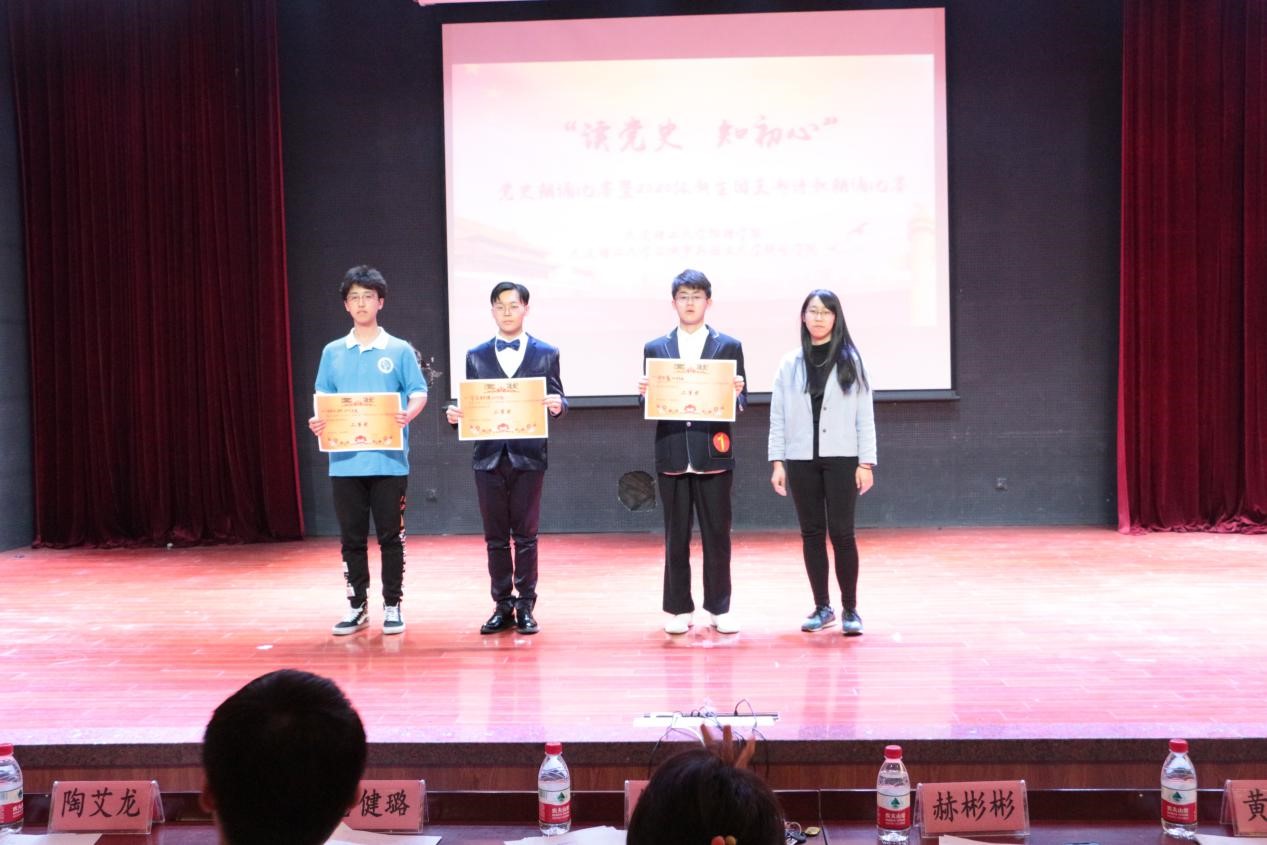 在观众的掌声中,各参赛班级的表演落下帷幕。各位评委对参赛班级的表演进行了评分。最终,获得一等奖的班级有:中白力学2001班、物大珩2002班;获得二等奖的班级有:中白力学2002班、物大珩2001班、物基2001班。中白力学2001班的柴昊、物大珩2002班的李汶阔获得此次比赛的最佳男领诵;中白力学2001班的李佳琦、物大珩2002班的邵晶晶获得此次比赛的最佳女领诵。
