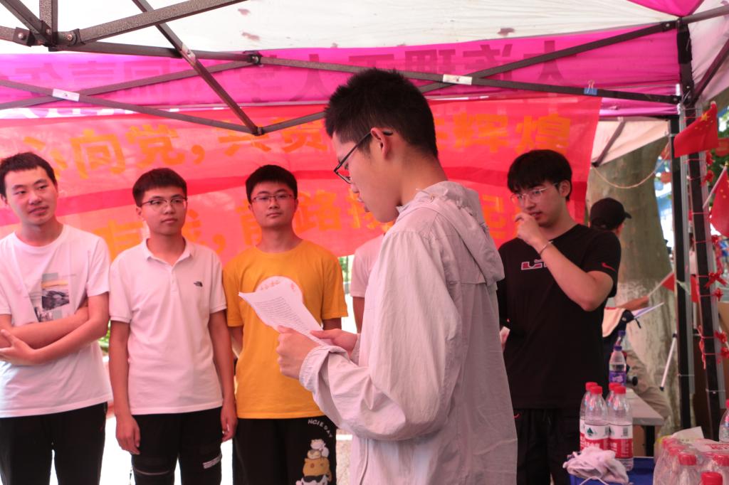 青春心向党,百年正风华。物基2001团支部以 “吾心向党,共贺十秩辉煌”为主题,动员全支部力量进行党史学习教育成果展展位的布置。展位现场由团支书刘泽璇同学做开场和总结,由组织委员郭旭同学主持,分别进行了“我与党的故事”、“今天是党的生日,我想对党说”、“为了走过百年风雨,先辈赴汤蹈火;共筑下个百年辉煌,吾辈义不容辞”、条幅签字明志等活动,得到了同学们的广泛参与。