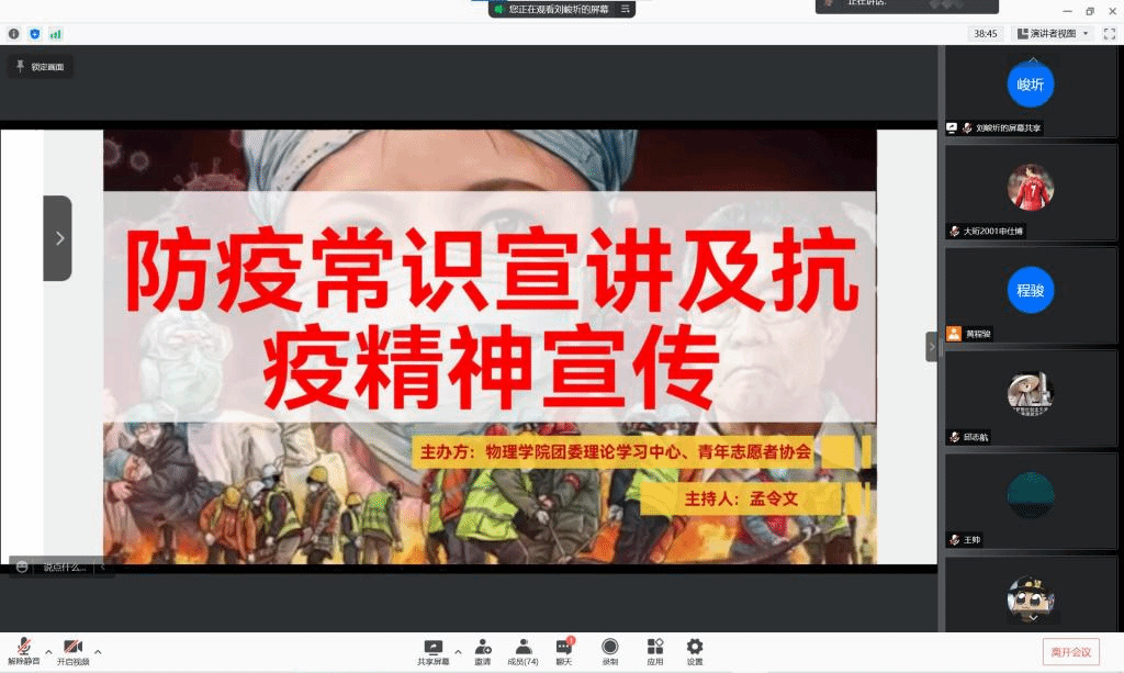 2021年11月12日晚6:30,物理学院防疫常识抗疫精神宣传宣讲会于线上顺利召开。